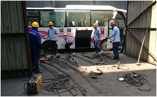 6月1日,客戶服務(wù)部張家勇經(jīng)理落實人員及防護裝備,金微星經(jīng)理助理丁慧協(xié)調(diào)工具和后勤保證。下午三點,大巴車滿載著攻堅人員駛出了公司大門。6月2日上午九點,經(jīng)過連續(xù)18個小時的急行軍,終于到達目的地。下午兩點開始接受培訓(xùn)并作施工前的準(zhǔn)備工作,而用戶給我們施工改造時間為48小時。