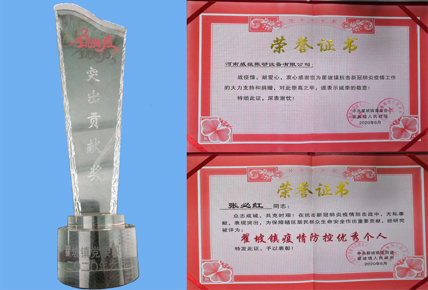 2020年6月25日上午,中共翟坡鎮(zhèn)委員會和翟坡鎮(zhèn)人民政府為抗擊疫情捐款捐物的愛心企業(yè)及個(gè)人舉行頒獎(jiǎng)儀式,為威猛股份頒發(fā)了“榮譽(yù)證書”、 “全民抗疫突出貢獻(xiàn)獎(jiǎng)”榮譽(yù)稱號,并為在公司疫情防控工作中作出的突出貢獻(xiàn)的張必紅頒發(fā)個(gè)人榮譽(yù)證書。