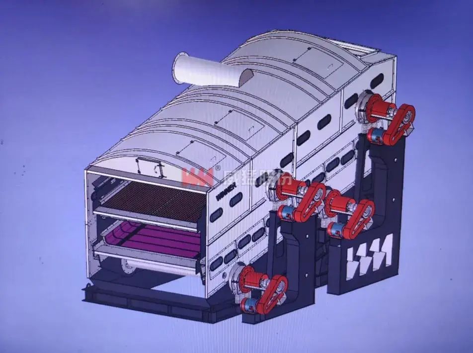 改變傳統(tǒng)篩子的機(jī)械結(jié)構(gòu),采用獨(dú)立弛張篩面振動(dòng)而篩框和篩箱不振動(dòng)的運(yùn)動(dòng)方式,從入料端到排料端多段弛張篩面各自獨(dú)立振動(dòng)。