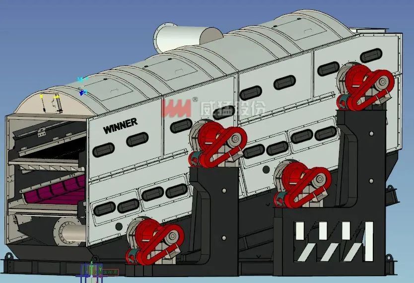 復(fù)頻篩-XC是威猛股份創(chuàng)新研發(fā)的新型篩分產(chǎn)品,成功解決濕粘物料難篩分的重大技術(shù)難題。復(fù)頻篩-XC是采用大振幅、大振動強度、較低振頻和高彈性聚氨酯防堵孔篩板來完成濕粘物料的篩分過程。其拋起塊礦的速度比普